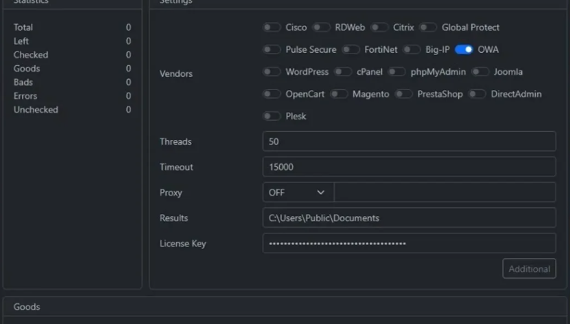 More recently, Darkweb IQ obtained and analysed a new credential checking and brute-forcing tool, “Golden Checker,” which represents a continued trend in the modularisation and commodification of credential validation tooling — where infrastructure, credential parsing and brute-force orchestration are bundled to simplify the process for threat actors. Like TMChecker, Golden Checker utilises a web-based interface that makes it easy to use. It can quickly test large numbers of usernames and passwords on various online login pages, such as remote desktops, websites, and virtual private network (VPN) devices.